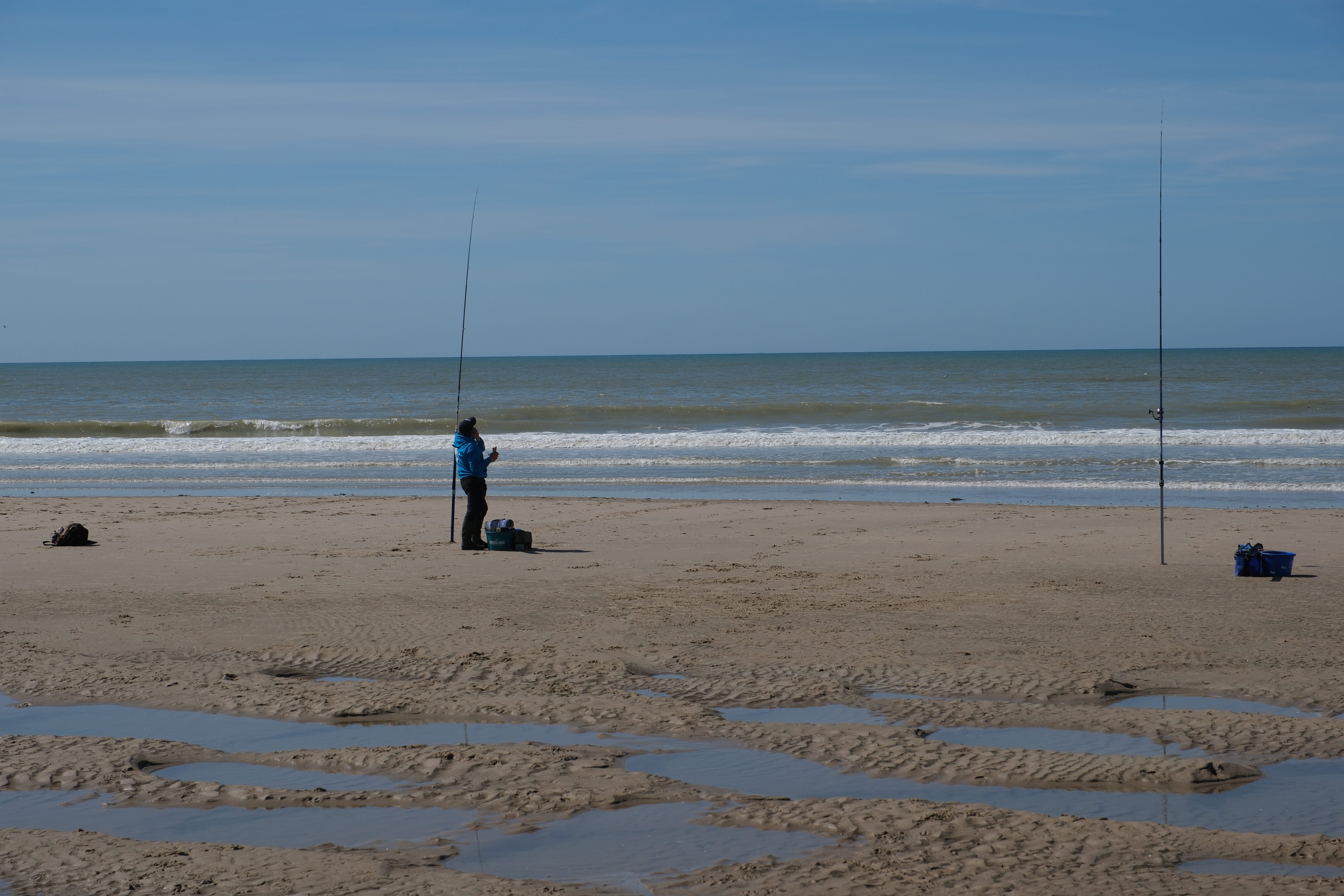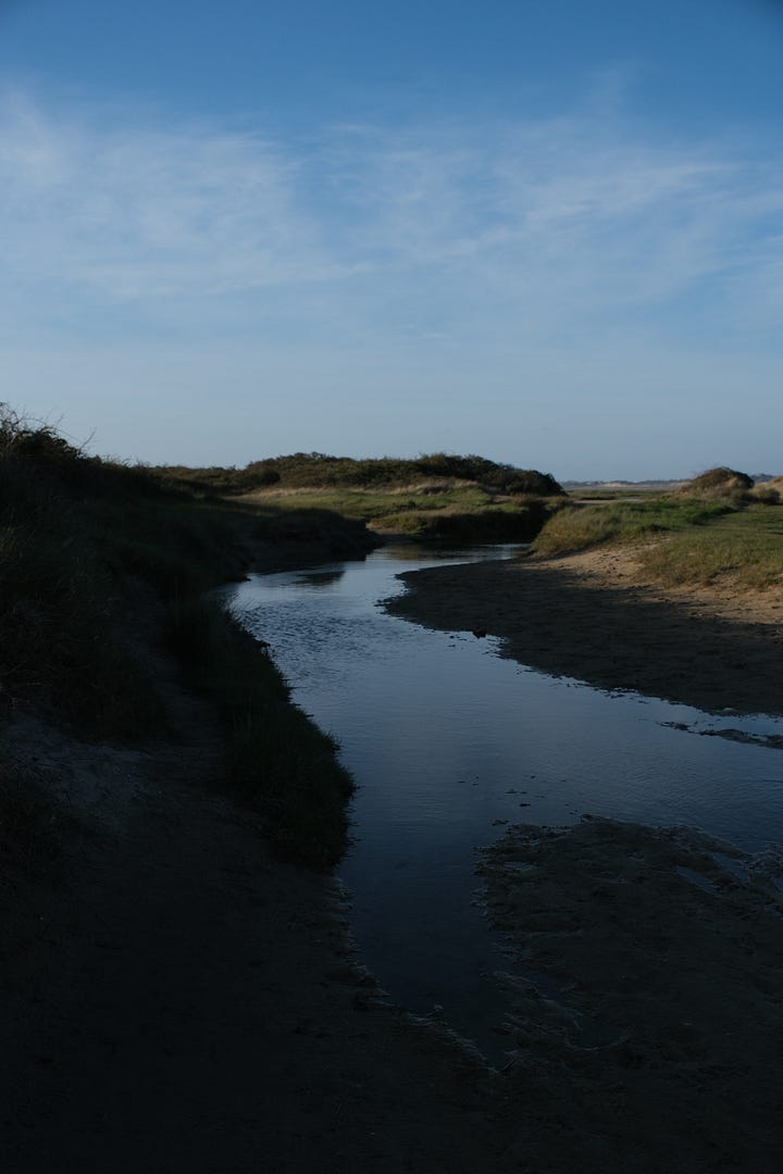 Seule digression à la Côte d’Opale au sens strict du terme : la baie de l’Authie, au sud de Berck, entre la Somme et le Pas-de-Calais, où viennent se nourrir des dizaines de phoques, juste avant la marée basse. Ce jour-là, nous n’avons pas eu la chance d’en croiser. Nous avons en revanche été éblouis par ses immenses étendues de sable et d’eau, comme un labyrinthe de miroirs brisés. La baie semble presque oubliée. Quand la mer commence à se retirer, le chemin ondule entre sable et vase, dans un silence étourdissant. La terre et la mer se cherchent et se repoussent, dans une lente poésie.